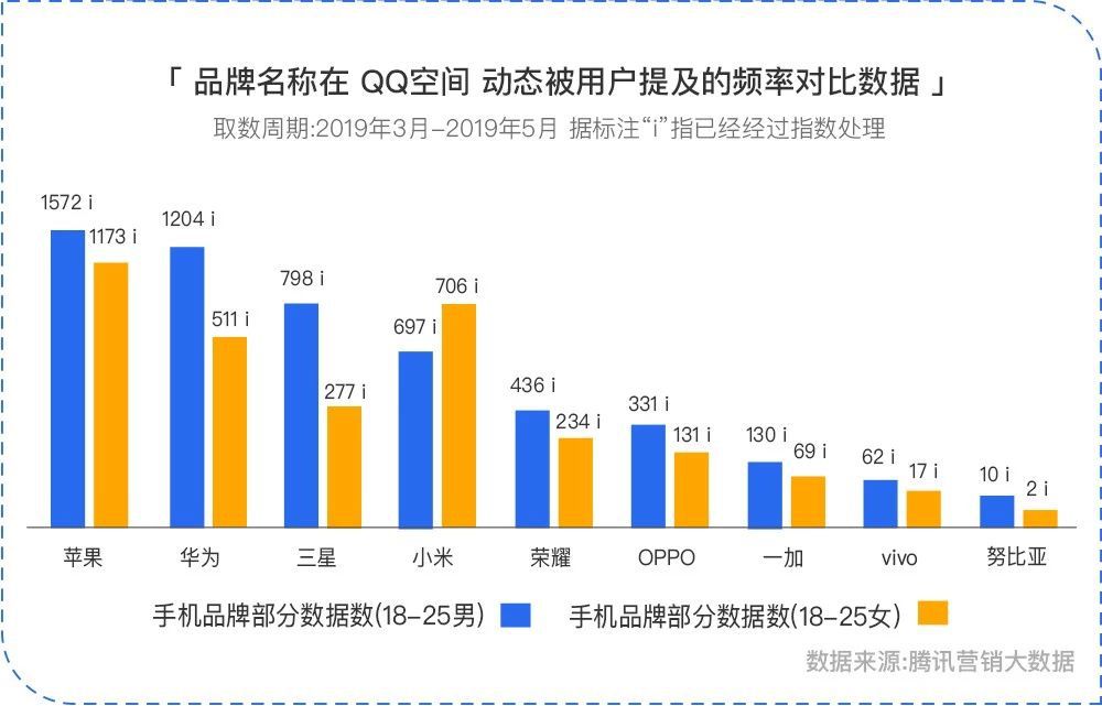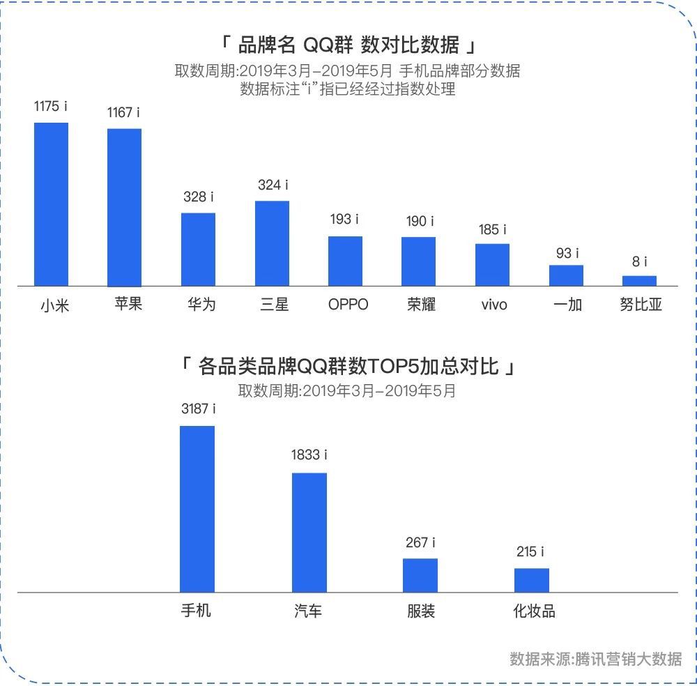 Z世代对品牌的关注与讨论,除了在QQ空间中主动分享,还包括为此创立QQ群。在手机品牌的相关QQ群中,以“小米”和“苹果”命名的数目最多,且领先其余品牌较多;华为、三星比例相近,约是前两者的三成左右。用户以QQ群形式对热门手机品牌讨论的热度十分可观,显著区别于其他品类品牌。