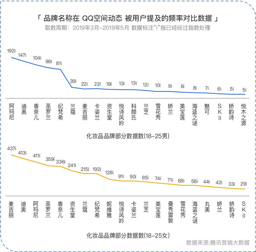 在QQ空间动态中,18-25岁男性对化妆品品牌提及的前五名均为奢侈品牌。男性对化妆品的使用与了解均明显低于女性,而一定档次的品牌往往是他们最先会接触到甚至仅会接触到的内容;“送礼”也作为他们在社交平台上分享和讨论的原因之一。18-25岁的女性对化妆品的讨论中,各品牌的涵盖则明显更全面,其中国产品牌麦吉丽位居首位,其推广和营销活动在年轻女性中有效地催动了人群间的自发分享。
