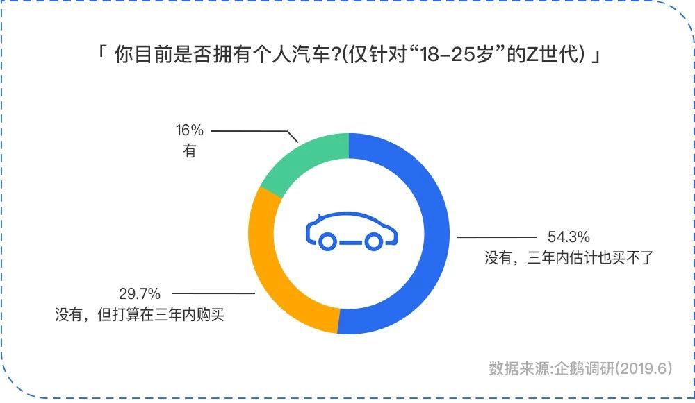 除了快速消费品,Z世代在耐用消费品上的消费力也不容小觑。16%的Z世代拥有个人汽车,29.7%表示打算在三年内购车。