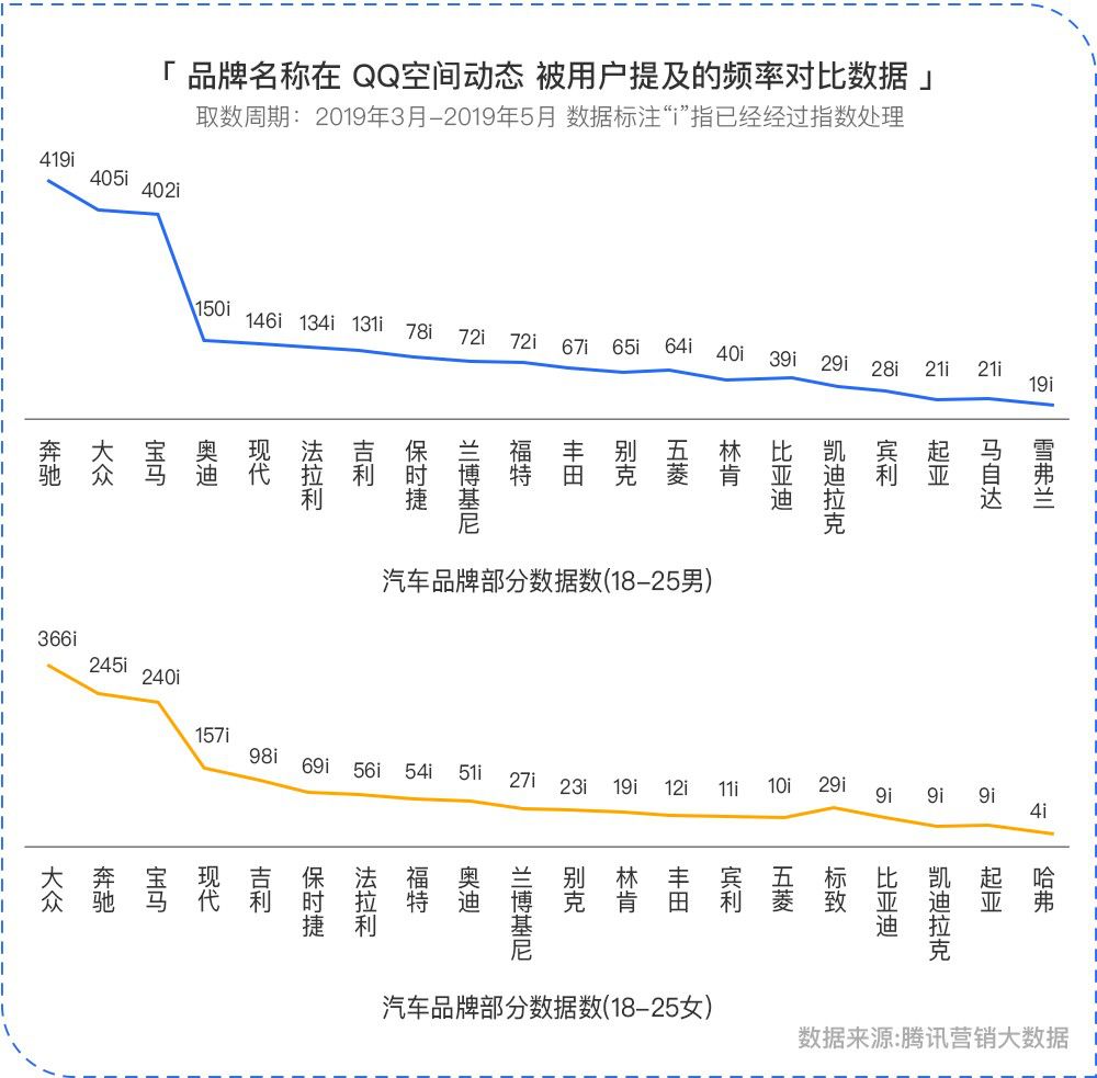 作为新新人类,Z世代乐于接受新鲜事物。在目前无车但计划在三年内购车的Z世代中,愿意购买混合能源车与新能源车的受访者多达36.2%和13.1%。奔驰、大众、宝马是在QQ空间里最常被提及的汽车品牌。