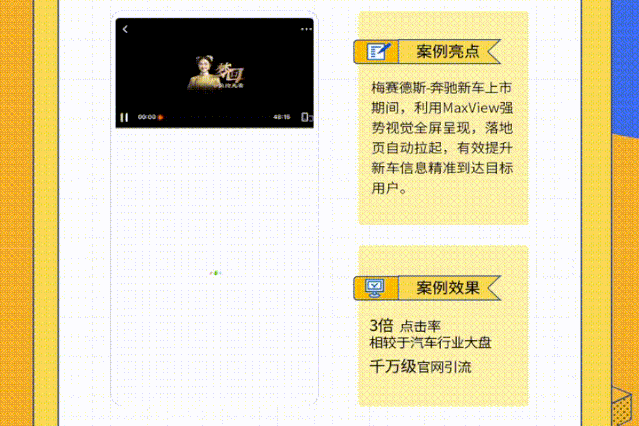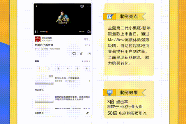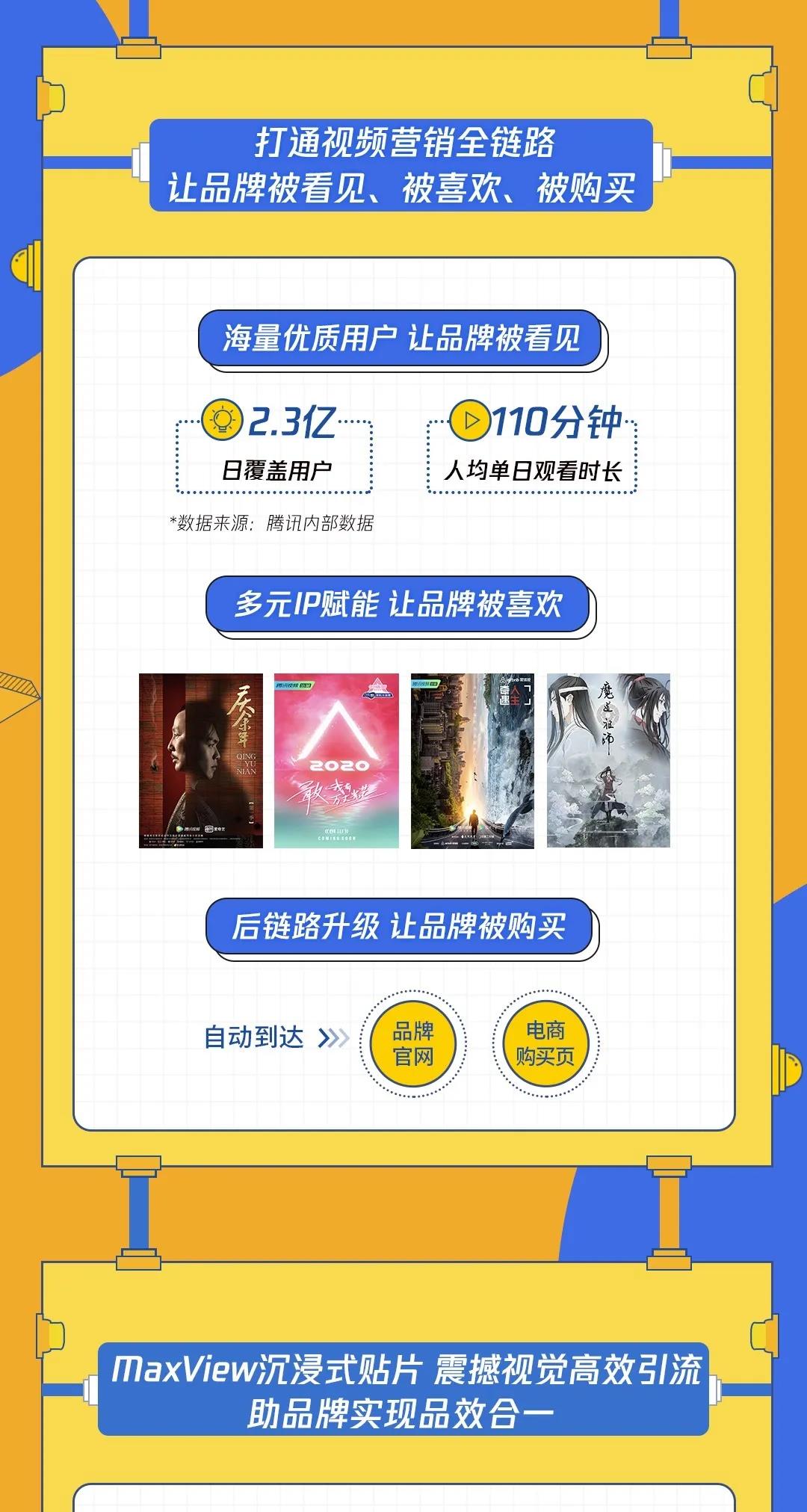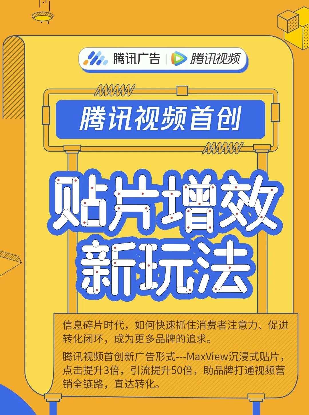 腾讯视频首创新广告形式——沉浸式贴片(MaxView):点击提升3倍,引流提升50倍,三大亮点助力品效协同。